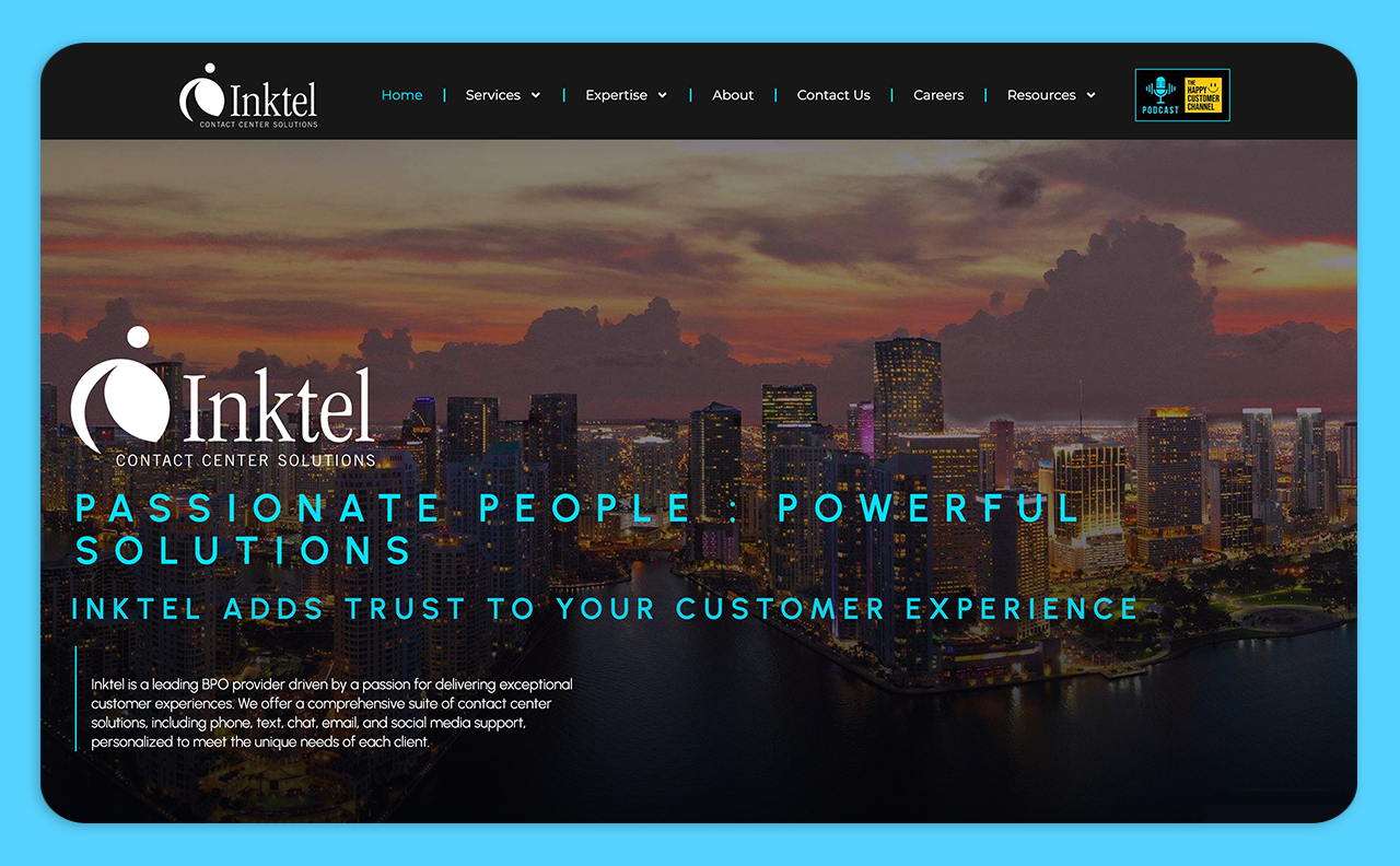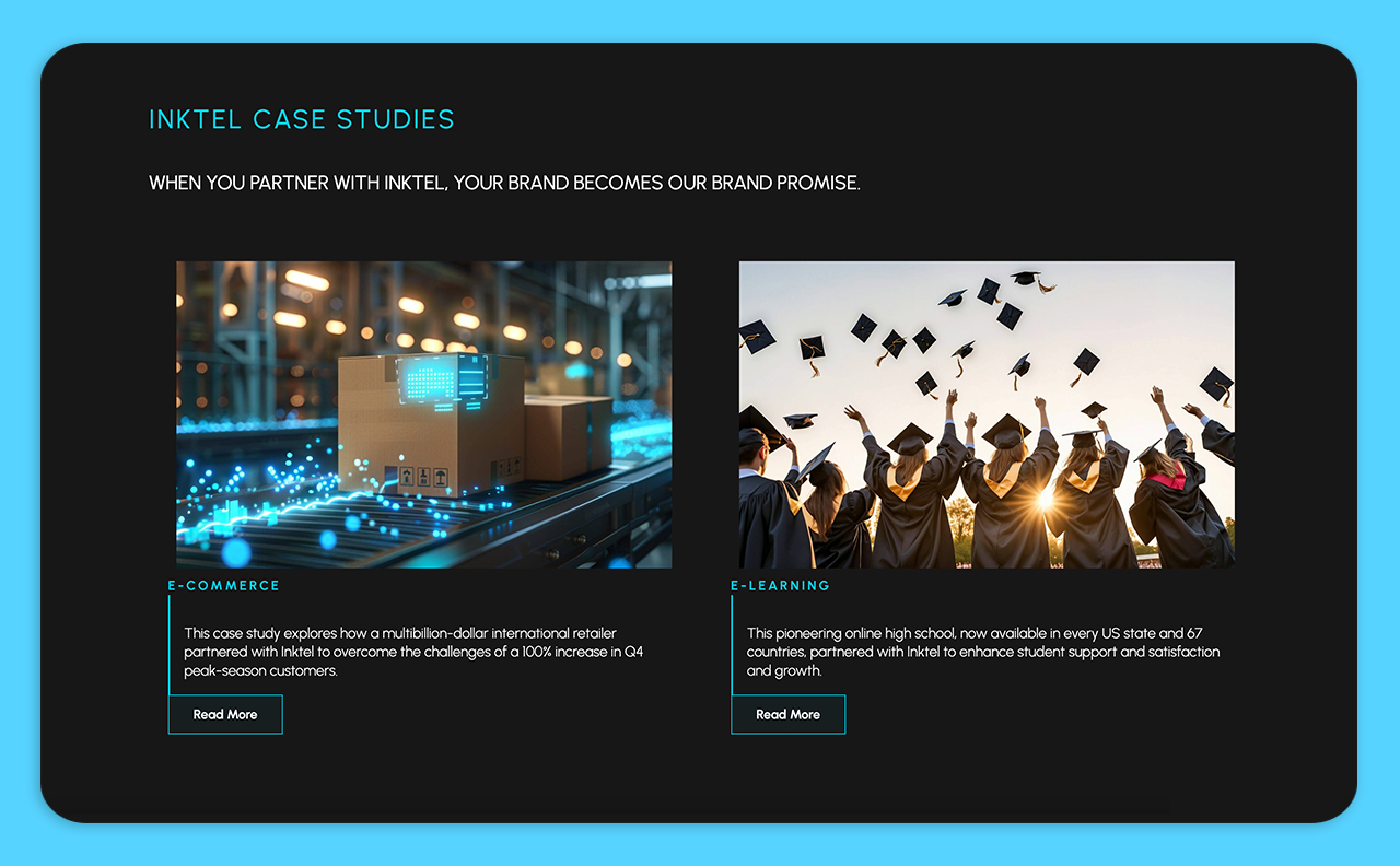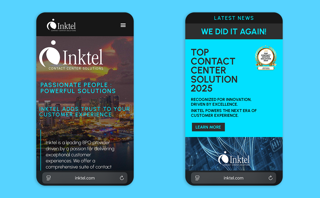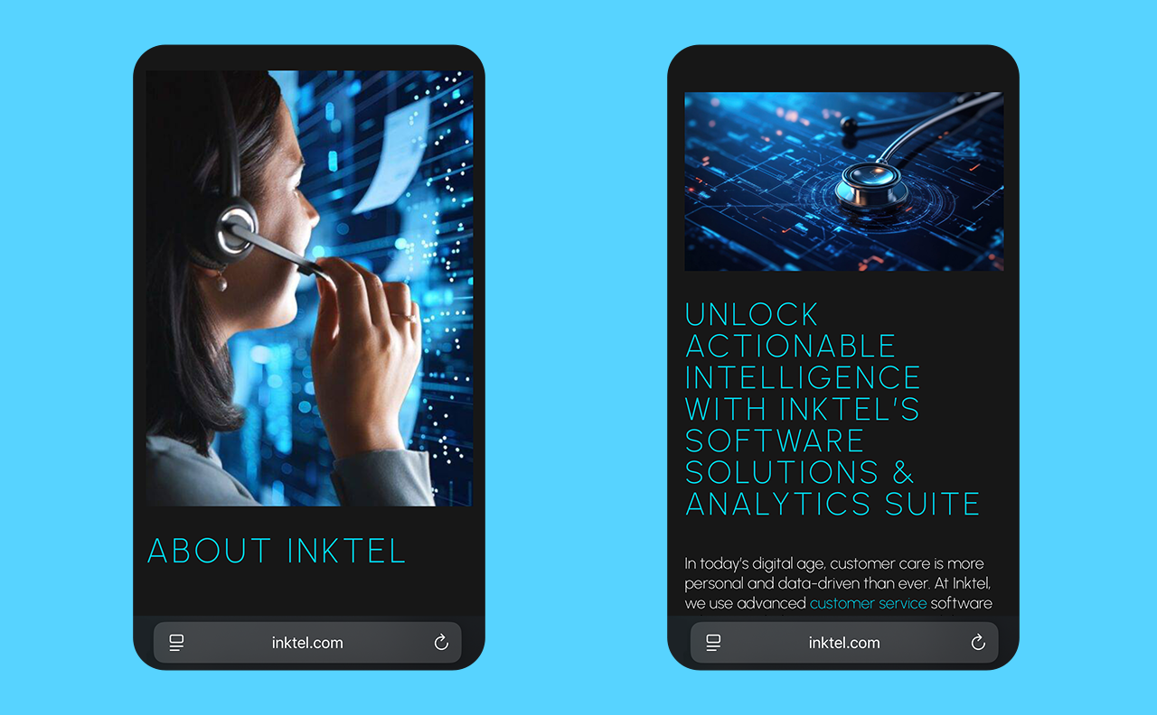 I led the visual design and creative direction for Inktel’s refreshed website, collaborating closely with internal stakeholders and an external development partner. The objective was to create a modern, high-tech digital presence that reflected Inktel’s expertise while serving multiple industries through a cohesive visual system.